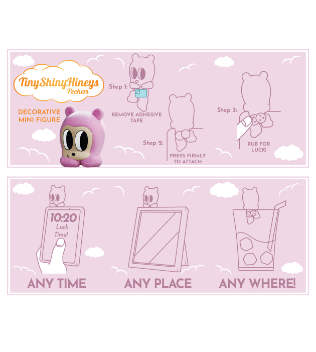Tiny Shiny Hineys are back! This time smaller and even luckier bottoms. These decorative mini figures have adhesive tape to stick to flat surfaces such as your phone, laptop or computer screen!